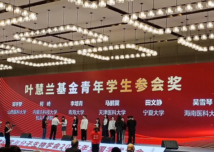 2025年10月,中国生物化学与分子生物学会2025年全国学术会议在南昌市隆重召开。百家乐网址 硕士研究生田文静同学积极提交会议摘要及海报,并荣获“2025年叶惠兰基金青年学生参会奖”。“叶惠兰基金青年学生参会奖”由中国生物化学与分子生物学会设立,旨在鼓励和支持全国高校及科研院所生物化学与分子生物学相关专业的优秀青年学生积极参与高水平学术交流,拓宽科研视野,激发创新思维。会议期间,田文静同学积极参与会议报告及海报交流,与来自全国各地的专家学者及学子进行深入探讨,展现了宁大学子在生命科学领域的风采