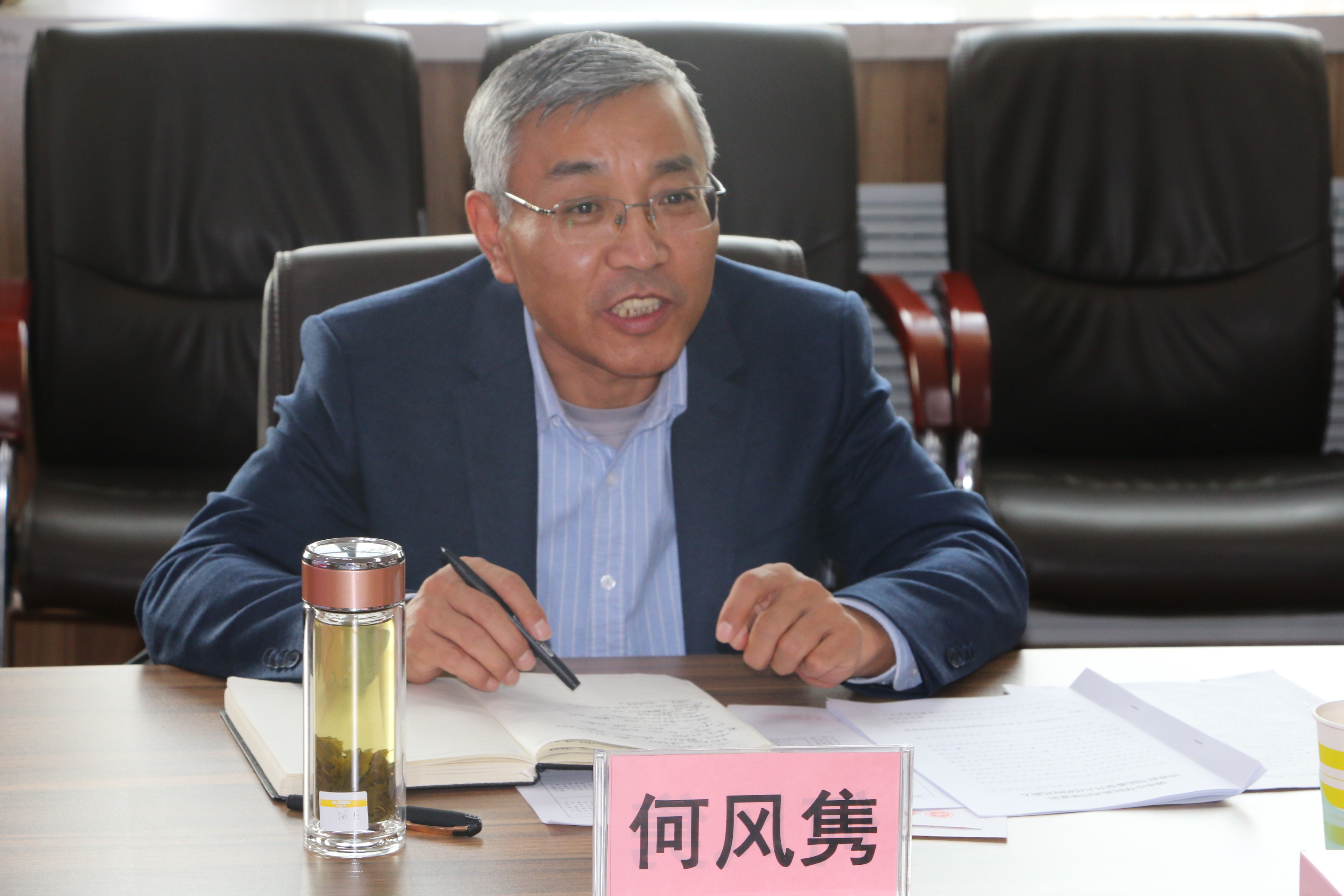 李东宁介绍了近年来学院开展民族团结进步创建工作和铸牢中华民族共同体意识工作情况,汇报了学院统战工作取得的成绩,同时也分析了目前学院统战工作方面还存在的不足及下一步改进建议。