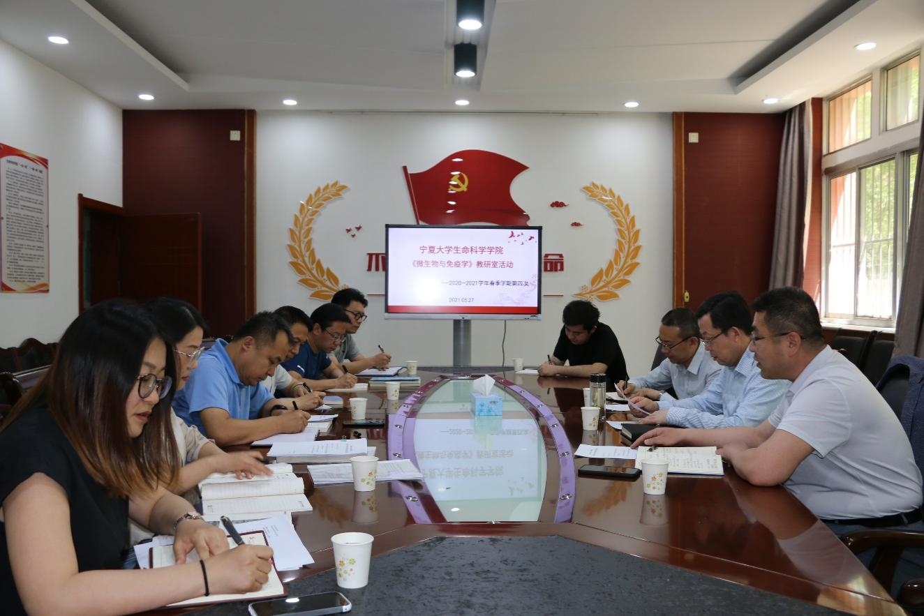 根据2020-2021学年春季学期教研室活动方案,百家乐网址“微生物与免疫学”教研室全体教师于2021年5月27日在文萃校区知本楼一楼会议室开展了春季学期第4次教研室活动,校党委副书记王玉炯、学院副院长王盛参加了本次活动。