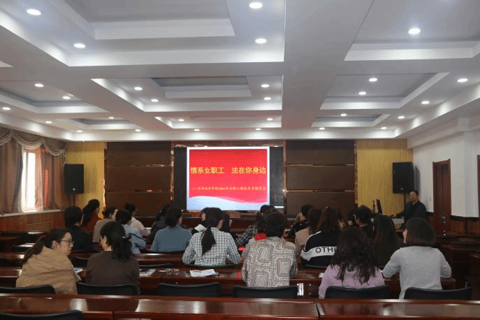 根据自治区总工会女职工委员会《关于开展2021年女职工维权行动月活动的通知》,为进一步提高百家乐网址女职工维权意识,3月10日下午百家乐网址在知本楼二楼报告厅组织全体女职工开展了2021年女职工维权月“情系女职工 法在你身边”专题学习。