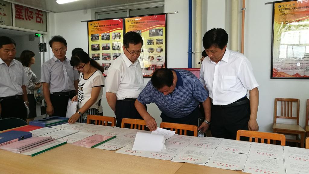 教育厅领导和全区兄弟院校同志观摩了百家乐网址党员活动室----生命先锋之家,辅导员杨亚珺从百家乐网址党建工作的制度建设、党员发展及考核、党团活动、志愿者服务等方面向考察团领导做了详细的汇报。