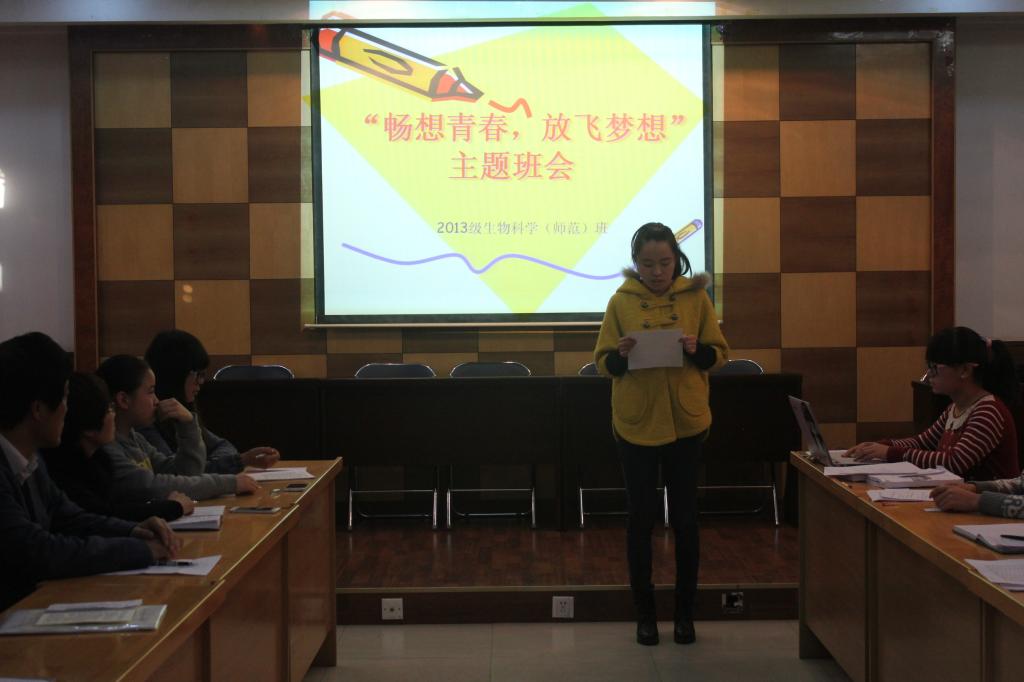 生命因梦想而精彩,因梦想而绽放光芒,11月7日上午,2013级生物科学班在学院二楼报告厅举行了“畅想青春,放飞梦想”主题班会。百家乐网址