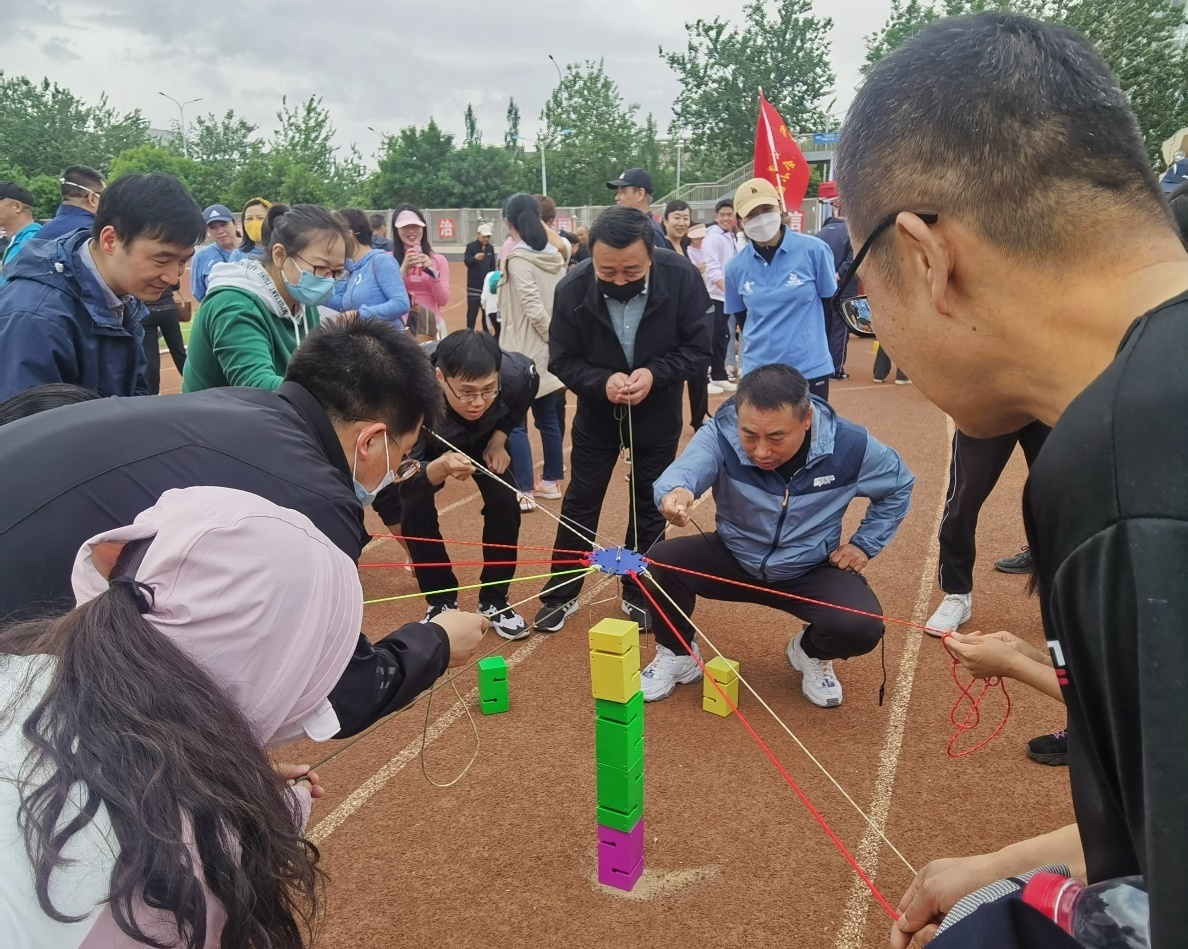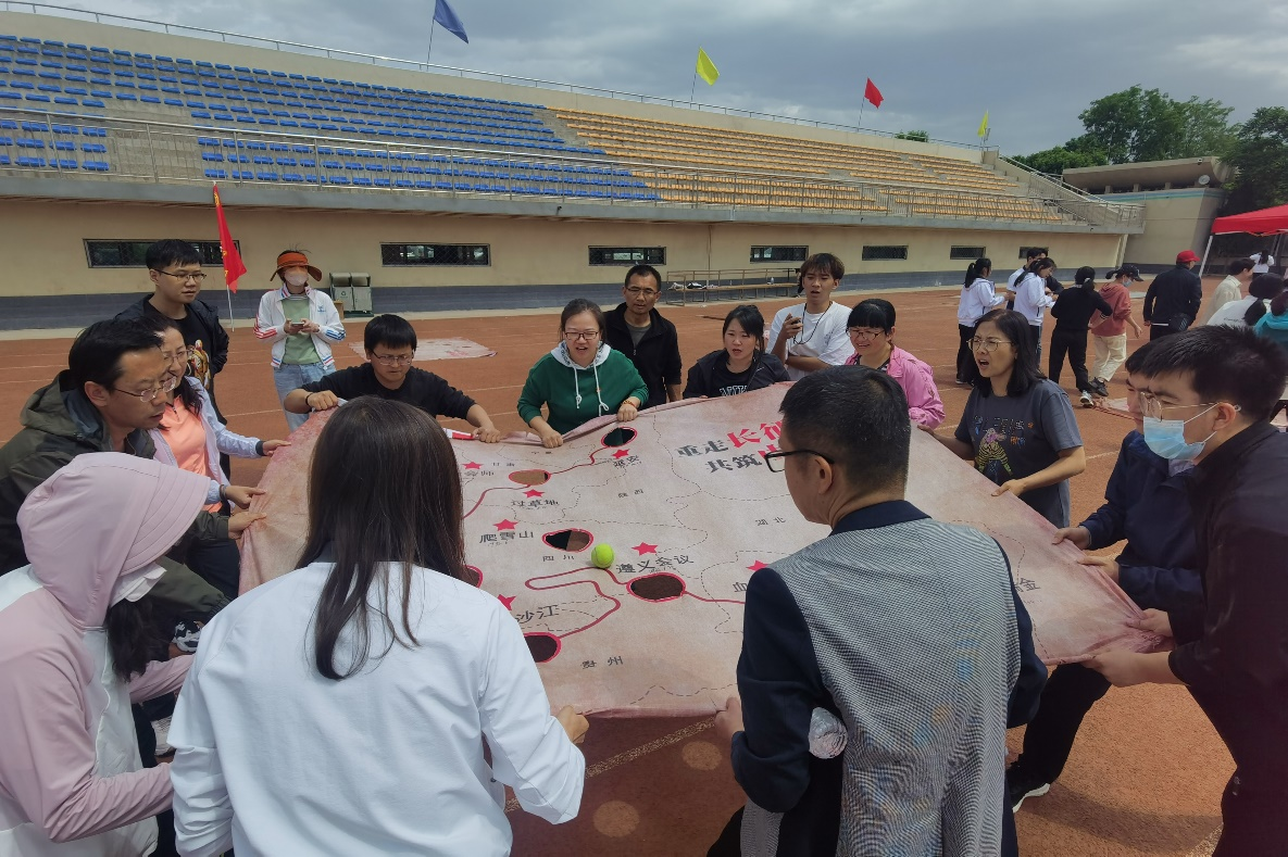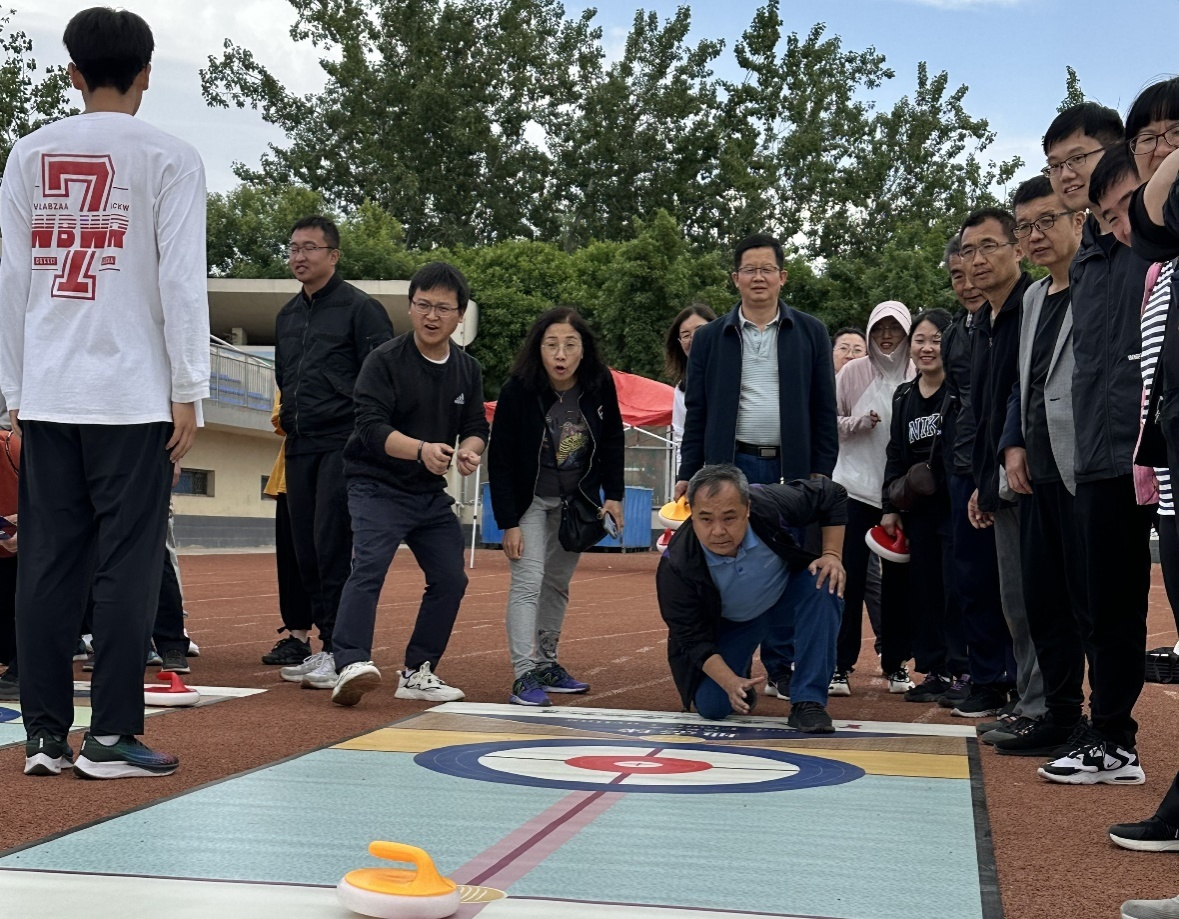 在邓光存书记、周学章副书记的带领和指挥下,20多名参赛教职工齐心协力、奋力拼搏,在一片呐喊助威声中顺利完成了“陆地冰壶”、“手忙脚乱”、“飞盘九宫格”、“合力筑塔”、“重走长征路”、“快乐大冲关”、“电臀达人”7个比赛项目。在比赛过程中,参赛教职工配合默契、相互鼓励、通力协作,在轻松愉快的氛围中,顺利完成了运动会所有的比赛项目。