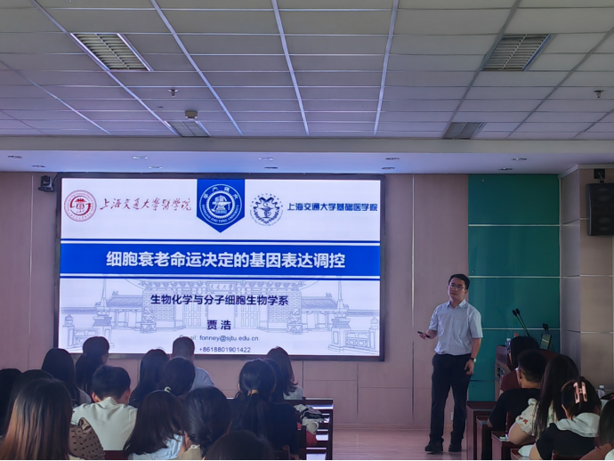 校友代表-上海交通大学基础医学院副研究员贾浩为教师和学生代表作了题为“细胞衰老命运决定的基因表达调控”的学术报告。报告深入浅出、紧扣学科发展前沿,开阔了师生的学术视野,使师生对相关领域有了更深刻全面的认识,赢得了与会青年教师及研究生的一致好评。