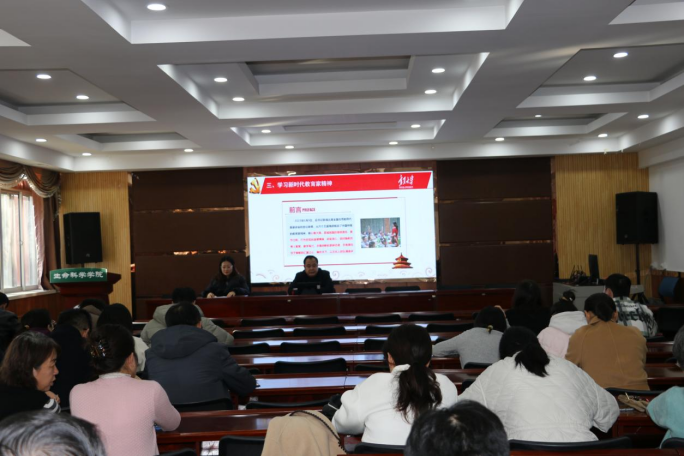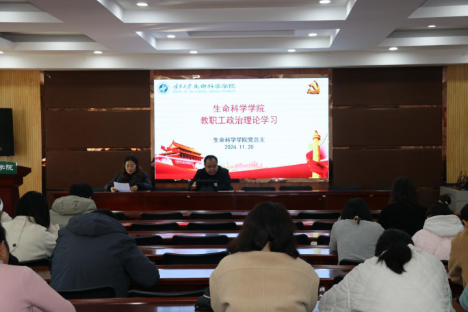 在文萃校区知本楼二楼报告厅开展教职工政治理论学习,学院全体教师参加会议,会议由学院党总支书记邓光存主持。