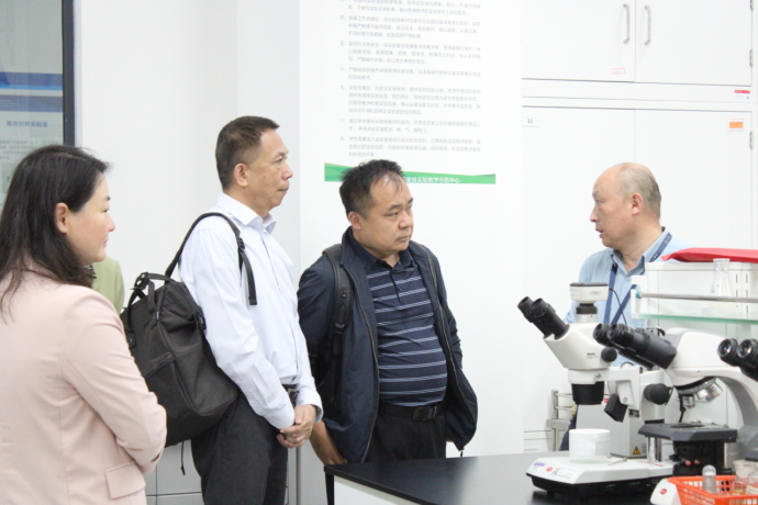 一行人员首先参观了上海交通大学生命科学技术学院学术文化展厅、仪器共享与技术服务平台以及生命科学与技术国家级实验教学示范中心。
