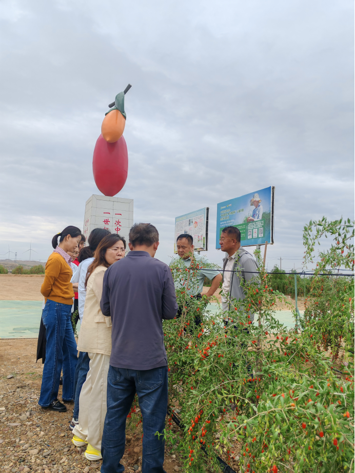 在杞鑫种业有限公司朱金忠总经理的陪同下,先后实地参观了公司鸣沙、营盘滩等枸杞种植基地,就不同基地栽培环境、种植技术和果实品质差异等方面的问题进行了现场交流。随后的座谈会上,双方围绕枸杞产业发展中新品种培育、生产加工以及活性成分挖掘等方面存在的问题开展了富有成效的探讨。