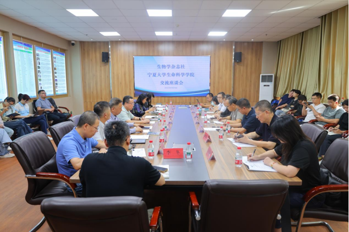 的学科布局、师资力量、创新团队、科研平台及社会服务等方面的情况。《生物学杂志》编辑部主任邓宇介绍了杂志的发展历程、办刊宗旨、栏目设置及其在生物学领域的学术影响力。生物学杂志社社长葛玲阐述了杂志社为树立行业标杆而推出的“标杆工程”,并清晰说明了针对优质稿件的稿费奖励标准,以激励高校科研人员积极投稿,助力杂志内容质量与学术影响力双向提升。随后,双方围绕生物学领域的前沿研究方向、学术成果转化、期刊投稿合作等话题展开深入探讨。
