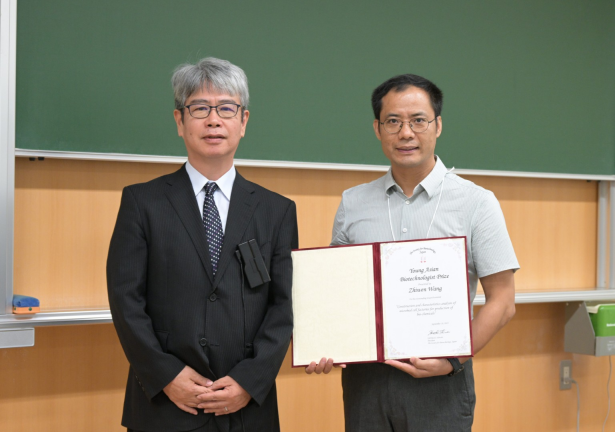 日本生物技术学会年会是亚太地区最具影响力的生物技术盛会之一,自2002年该学会设立“亚洲生物技术青年科学家奖”,旨在发掘并激励亚洲范围内45岁以下、在生物技术领域取得卓越成绩的青年科研工作者,每年度评选1-2名非日籍获奖者。2025年,学院王智文教授独自获得该奖项。