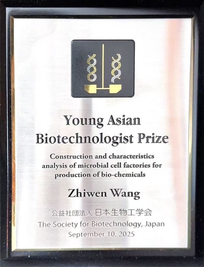 王智文教授赴日本,出席了第77届日本生物技术学会年会。凭借在生物技术领域的突出成果与创新贡献,王智文教授荣获2025年“亚洲生物技术青年科学家奖”。