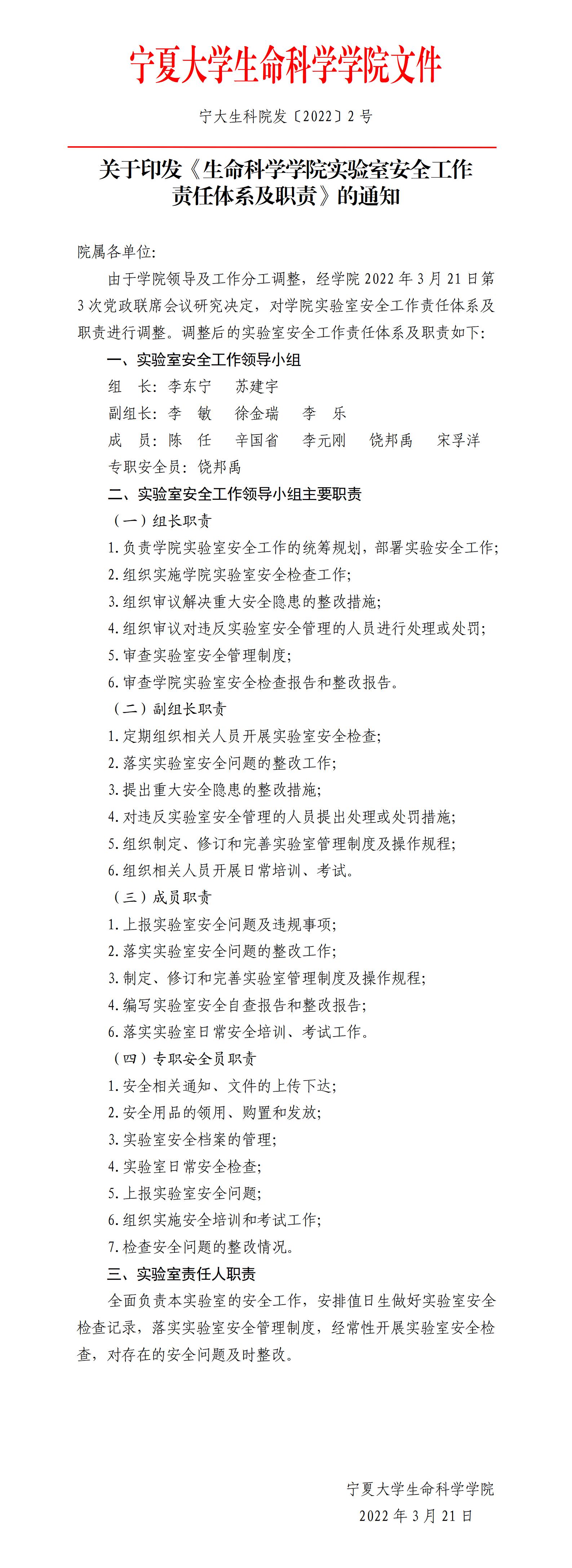 关于印发《百家乐网址 实验室安全工作责任体系及职责》的通知