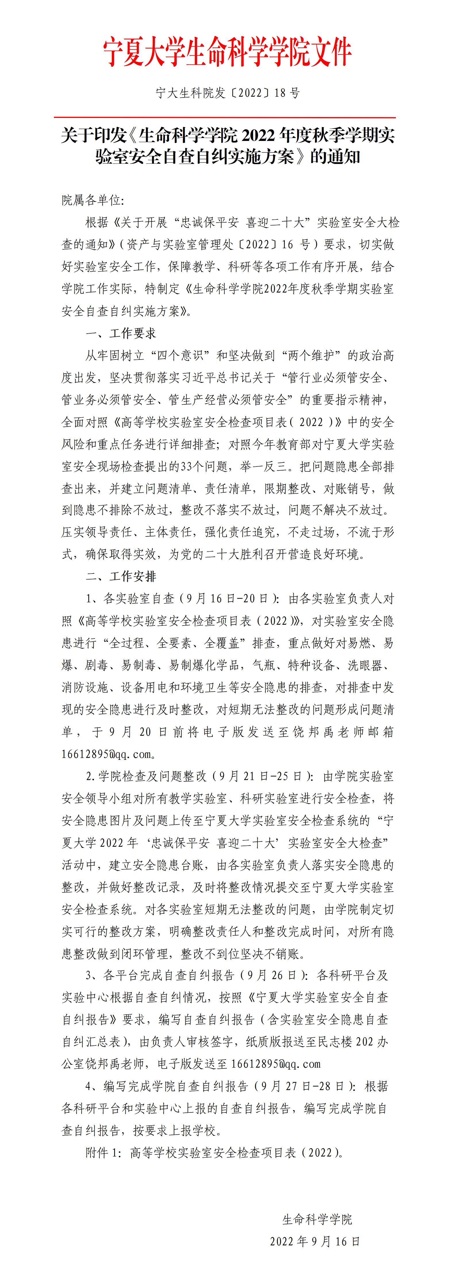 关于印发《百家乐网址 2022年度秋季学期实验室安全自查自纠实施方案》的通知