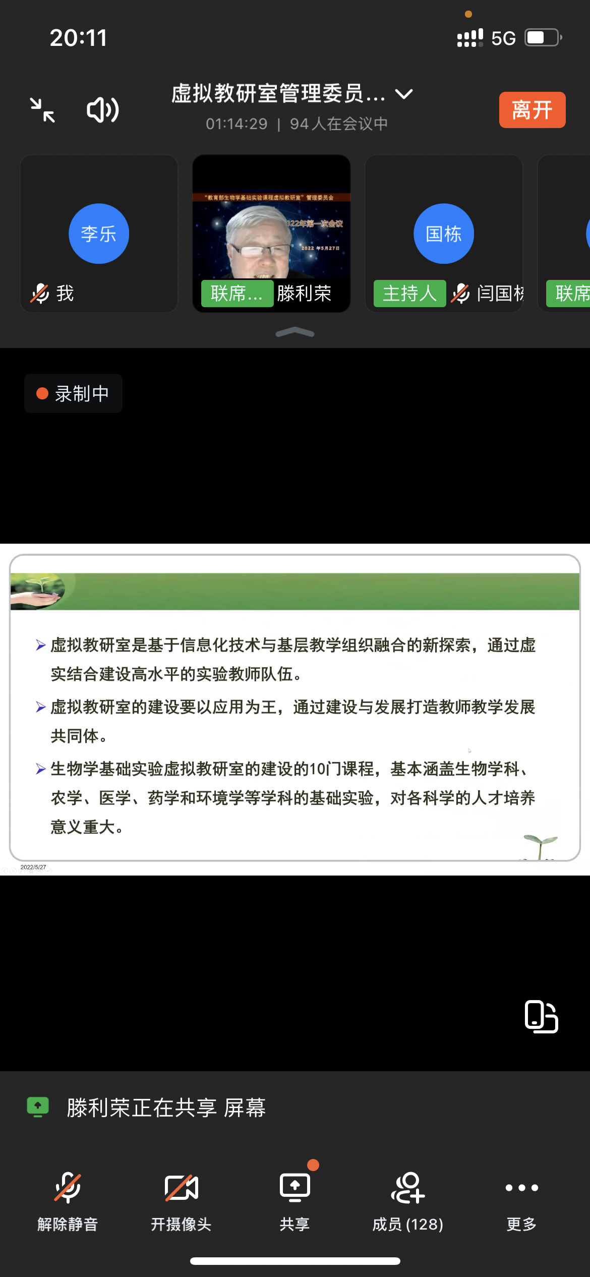 5月27日,生物学基础实验课程虚拟教研室召开管理委员会2022年第一次会议,会议决定在我校生命科学学院设置“教育部生物学基础实验课程虚拟教研室宁夏大学生命科学学院分教研室”,百家乐网址 副院长李乐担任分教研室主任并当选教育部生物学基础实验课程虚拟教研室管理委员会委员。