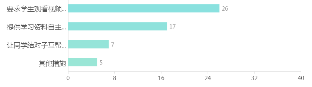 2.对于未到课的学生,老师采取的措施:主要是要求学生观看视频回放,其次是供学习资料自主学习及让同学结对子互帮互学等其他措施。