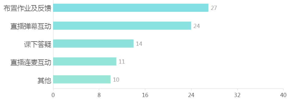 3.与学生的互动方式:主要是布置作业及反馈,直播弹幕互动和课下答疑。