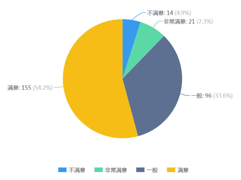 7.学生对自己的满意度分析:非常满意占7.3%,满意占54.2%,一般占33.6%,不满意占4.9%。