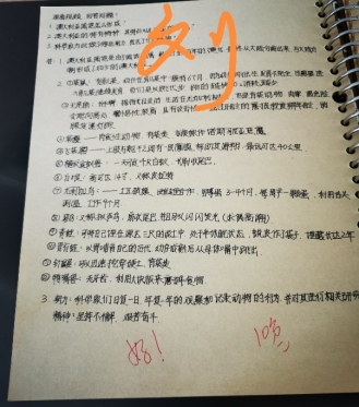 过程性考核:①针对重点章节如“什么是生物多样性”重点观看“澳洲动物探秘” “云横秦岭”等进行记录和课堂作业计入平时成绩。②课堂讨论及作业。如观看了“苏峪口传奇”重点讨论家乡的自然保护区及珍惜濒危保护生物,并将讨论整理计入平时成绩。“遗传多样性”一节典型案例“大豆”“猕猴桃与奇异果”等案例设置问题进行讨论。③笔记:包括课堂笔记和自行观看视频笔记。