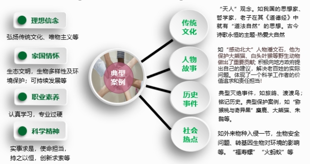 对大学生进行生态文明及生物多样性保护的教育可以起到推广辐射的作用,他们可以将这种思想潜移默化地带入到中学的课堂、中学生的生活及学生的社会关系中。为同学们未来步入社会、投入到祖国建设的征途中弘扬生态文明、建设美丽中国定下基调。力求知识传授、能力培养和价值引领的同步提升,达成立德树人的教育目标。