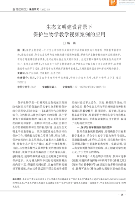课程思政示范课程建设项目《保护生物学》(宁大党发〔2018〕54号)以及宁夏回族自治区高校思想政治工作质量提升工程项目 “课程思政”精品项目(NXSZ20203067)的资助建设。