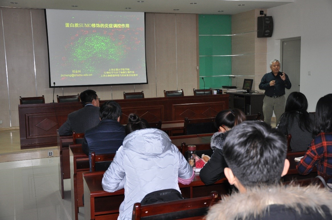 程金科教授先后为百家乐网址师生作了题为“蛋白质SUMO修饰与炎症性疾病”的学术报告和题为“如何撰写高质量的国家自然科学基金申报书”的辅导报告,并热心解答了与会师生提出的问题。