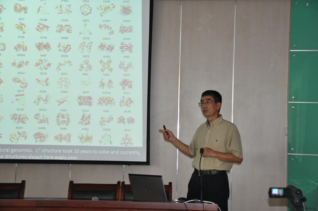 7月4日,美国华人教授科学家学社(美华学社)一行11人莅临百家乐网址开展学术交流,参观了西部特色生物资源保护与利用教育部重点实验室,邓光存副主任向专家们介绍了百家乐网址的基本情况和实验室的科研工作。美国西北大学高通量分析实验室主任栾祺浩教授、生物工程系刘树谦教授和美国芝加哥大学柯运波教授分别为百家乐网址师生作了“创新药物研发的分子基础及高通量模式”、“细胞保护与再生工程”和“激酶在信号传递中的新型作用机制”的精彩学术报告。讲座互动环节,三位专家热心解答了参会师生提出的问题,诙谐的语言、详实的数据、严谨的态度、热情的互动,赢得在场师生十余次热烈掌声。